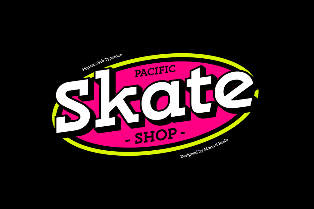 Hopera Slab is a contemporary slab serif typeface infused with the bold spirit of 1980s typography. Its strong, geometric structure is enriched with subtle retro details, especially visible in select uppercase and lowercase characters, giving it a distinctive personality without sacrificing readability.