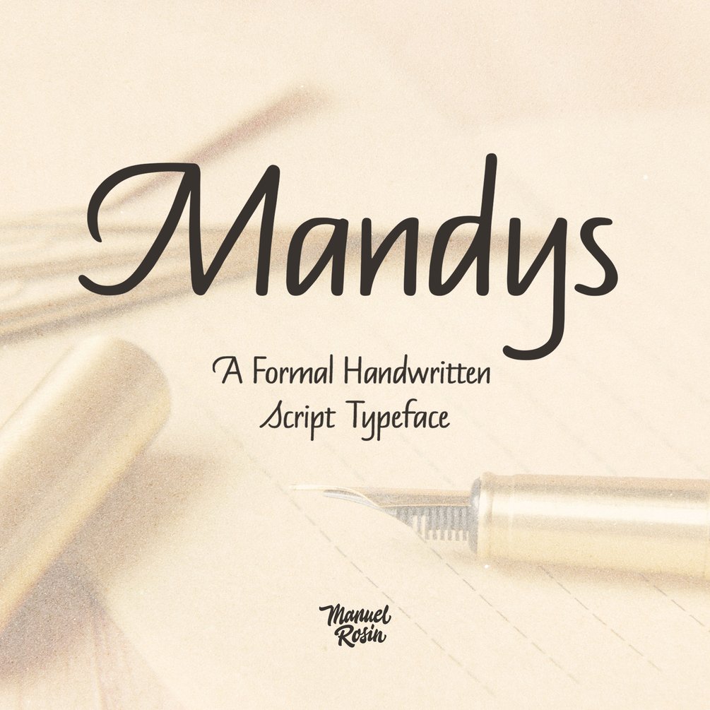 Presenting Mandys, a handwritten script typeface that takes inspiration from skeleton of formal handwritten Italic hand. It is completely handmade with a pointed brush pen to keep the naturalness and imperfections of handwritten notes.