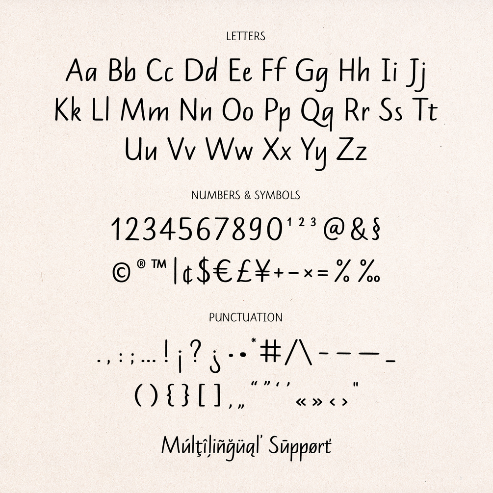 Mandys consists of more than 400 glyphs, with some Stylistic alternates, Swashes Capitals and supports over 240 languages. It is ideal for notes, labels, invitations, handwritten quotes, branding or any project that needs an authentic handwritten touch.